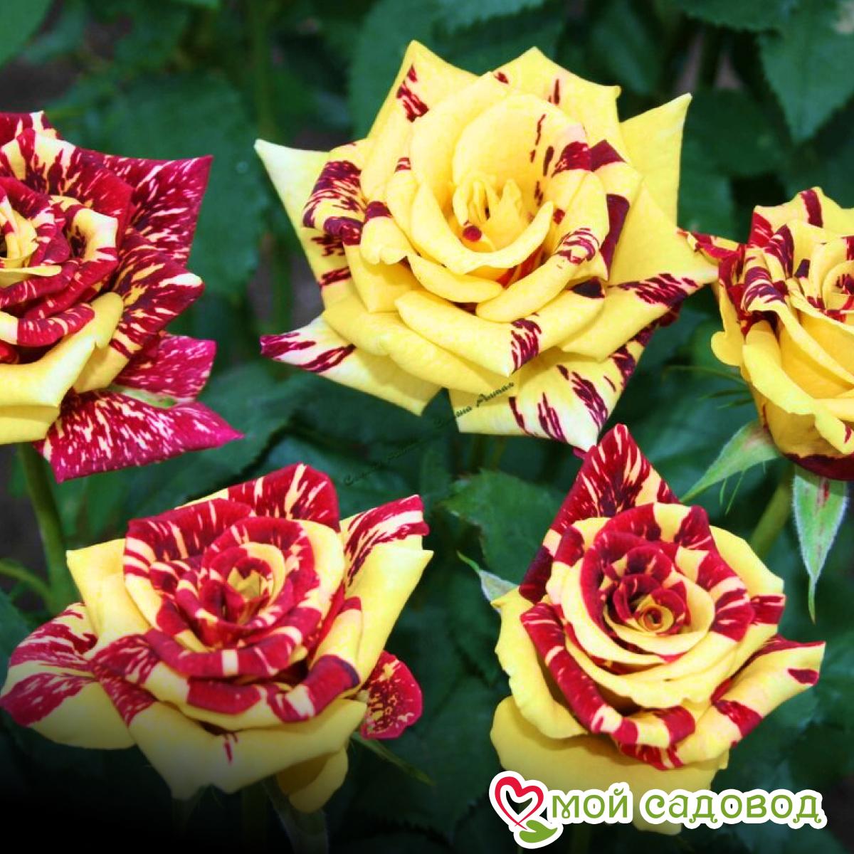 Роза Сим Салабим (Симсалабим, Simsalabim) – результат кропотливого селекционного процесса немецких инженеров-цветоводов агрохолдинга Kordes. Цветок относится к группе чайно-гибридных сортов и был получен в результате соединения ремонтантного гибрида и чайной розы. Гибридный сорт относится к компактным растениям и состоит из прямых отростков. Средняя высота взрослого растения находится в диапазоне от 70 см до 90 см, а диаметр кроны не превышает 60 см. Насыщенно-зеленые листовые пластины имеют средний размер и мелкозубчатые края. Форма цветков напоминает бокал, а их диаметр достигает 10 см. Лепестки насыщенно-лимонных цветов покрыты темно-бордовыми бархатными полосами, вкраплениями и точками. Основная цветовая гамма – желтая, красная. Оттенок бутонов яркий, насыщенный и очень пестрый. В одном цветке формируется около 25 махровых лепестков, раскрытие которых спиралевидное. Цветы благоухают легким, нежным и ненавязчивым ароматом. На одном стебле может сформироваться до 15 цветов, собранных в соцветия. Уход за розами заключается в систематическом рыхлении грунта, удалении сорняков, профилактике заболеваний, подкормке и обрезке. Подкормку роз проводят сезонно: азотом – весной, фосфором и калием – летом. Несмотря на засухоустойчивость, полив роз – процедура обязательная, особенно в жаркие и засушливые периоды. Поливают растения не холодной водой из расчета на куст 15-20 л воды, в сухую и теплую погоду – два раза в неделю. К концу лета полив сокращается и прекращается вовсе с наступлением сентября. В первый год допускать раннего цветения молодых растений не следует. Вплоть до начала августа бутоны роз с кустов удаляют. В августе оставляют по 1-2 цветка на каждом побеге и не срезают их, чтобы осенью завязались плоды. Побеги розы в таком случае лучше вызревают, хорошо перезимовывают и на будущий год обильно цветут. 2-летние саженцы ЗКС в мягкой упаковке. Перед упаковкой роз мы проводим обработку корней гидрогелем и пакуем их в обогащенный микроэлементами почвенный субстрат, что обеспечивает жизнеспособность саженцев по пути к вам. До посадки хранить при t 0+2°С. В нашем интернет-магазине вы сможете купить Чайно-гибридные розы Так же возможно вас заинтересуют Роза Версилия и Роза Геральдина